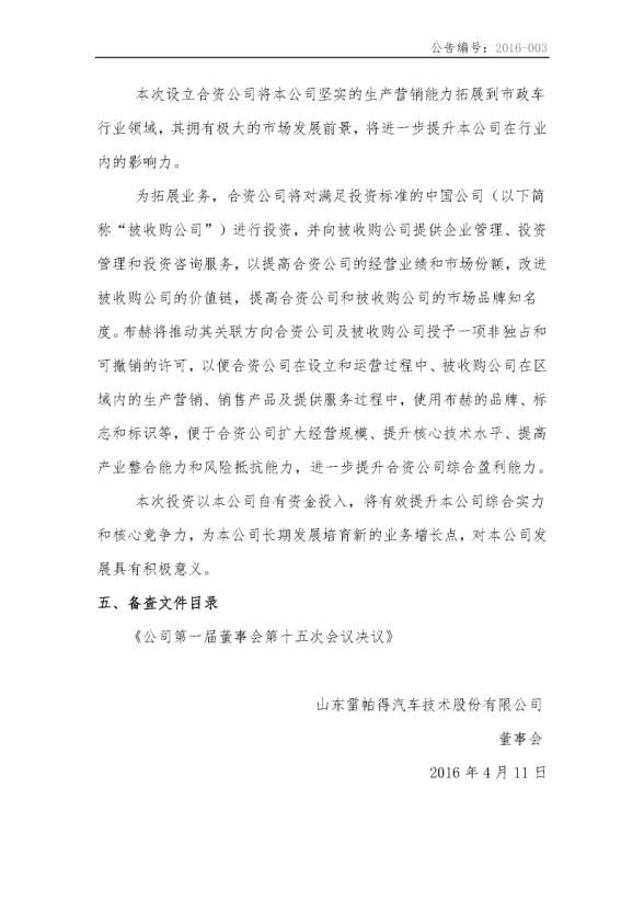 山東雷帕得汽車技術(shù)股份有限公司對(duì)外投資公告