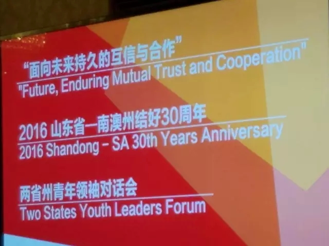 公司新聞9月9日,在山東省與南澳州結(jié)好30周年之際,“面向未來(lái)持久的互信與合作”,2016山東省—南澳州兩省州青年領(lǐng)袖對(duì)話會(huì)在澳大利亞南澳州阿德萊德市成功舉辦。山東省副省長(zhǎng)夏耕、團(tuán)省委書記、山東省青聯(lián)名譽(yù)主席張濤、澳大利亞南澳州投資與貿(mào)易部部長(zhǎng)史毅德、南澳州阿德萊德市市長(zhǎng)馬丁·海澤等兩省州政府官員出席對(duì)話會(huì)。山東雷帕得汽車技術(shù)股份有限公司董事長(zhǎng)王金珂作為我省青年企業(yè)家代表參會(huì),全程參加了相關(guān)活動(dòng)。