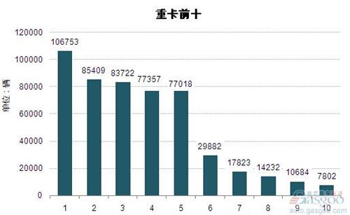 2014年1-8月重型載貨車企銷量前十統(tǒng)計