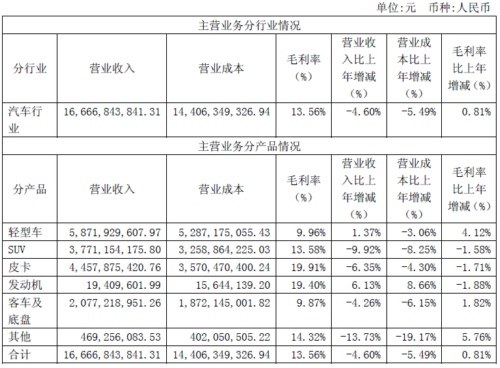 公司表示,在汽車銷量方面,本 部汽車銷售12.9萬輛,同比下降15.4%。其中本部輕卡全年銷售9.0萬輛,同比下降17.9%,銷量下滑主要因為排放法規(guī)嚴格執(zhí)行國Ⅳ標準,商用車 市場需求整體下降。同時,客車及底盤銷售3.6萬輛,同比增長5.9%,其中客車底盤銷售3.0萬輛,同比增長4.2%,繼續(xù)保持中輕客車底盤行業(yè)市場第 一。鄭州日產(chǎn)由于商品老化、政府等大客戶訂單大幅下滑等因素影響,全年共銷售整車10.9萬輛,同比下降7.8%。