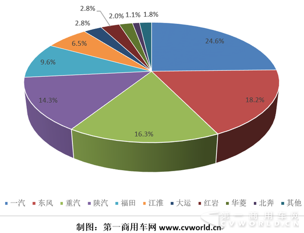 叢各家企業(yè)的表現(xiàn)來看,今年1-3月,重卡“老大哥”一汽解放累計銷量達到6.78萬輛,同比增長123%,市場份額為24.6%,其發(fā)展勢頭仍然兇猛;東風重卡累計銷售5萬輛,同比增長78%,市場份額18.2%;中國重汽銷售4.48萬輛重卡,同比增長83%,市場占有率為16.3%;陜汽保持行業(yè)第四,今年累計銷售重卡3.95萬輛,同比增長82%,份額為14.3%;福田汽車銷售重卡2.65萬輛,同比增長53%,份額9.6%。