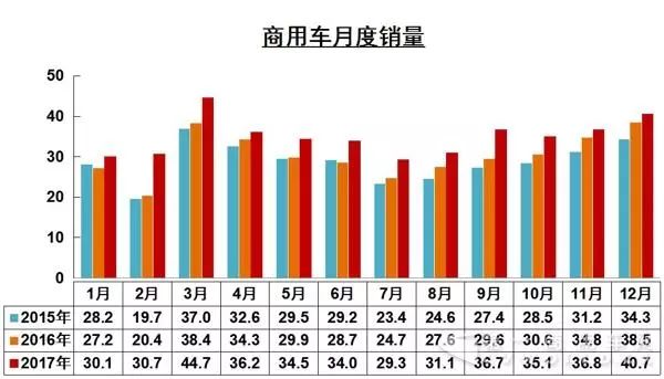 2017年12月商用車產(chǎn)銷數(shù)據(jù)出爐!2018年1月11日,中汽協(xié)發(fā)布2017年12月汽車產(chǎn)銷數(shù)據(jù)。2017年12月,汽車生產(chǎn)304.14萬輛,環(huán)比下降1.26%,同比下降0.70%;銷售306.03萬輛,環(huán)比增長3.47%,同比增長0.10%。其中,商用車生產(chǎn)43.18萬輛,環(huán)比增長5%,同比增長3.11%;銷售40.70萬輛,環(huán)比增長10.56%,同比增長5.70%。