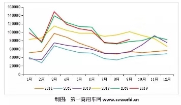 2014-2019年前三季度重卡市場(chǎng)銷量走勢(shì)圖